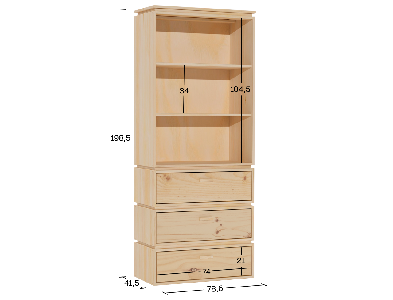 Este es un mueble sostenible y reciclable con certificación PEFC. Fabricado con madera maciza ecológica de pino insignis, procedente de bosques locales y sostenibles.