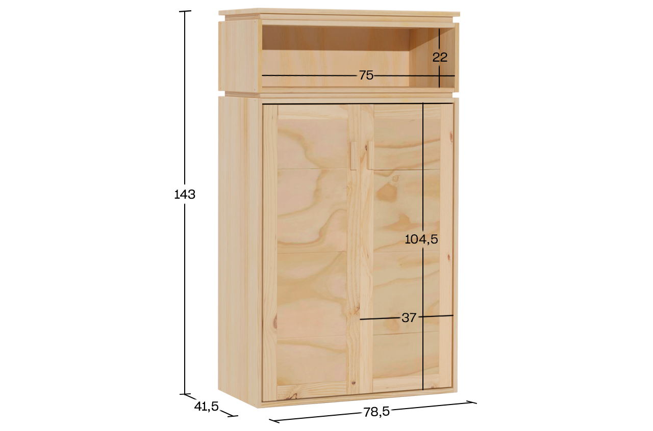 Este es un mueble sostenible y reciclable con certificación PEFC. Fabricado con madera maciza ecológica de pino insignis, procedente de bosques locales y sostenibles.
