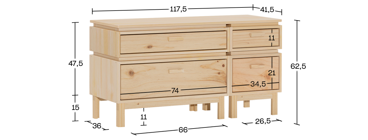 4 / 5Hola. Estoy bastante satisfecho con los muebles que he comprado (5 hasta ahora). Me gusta que sean de madera maciza de pino y que los pueda tratar a mi gusto. El único pero que les pongo, y en eso coincido con otros compradores que han dejado comentarios, es que falta un paso de control de calidad mínimo antes del envío, porque me han llegado algunas piezas con diferentes defectos, como: agujeros no alineados, fondo de cajón demasiado largo, marco de cajonera fuera de escuadra, agujeros de tubillones demasiado hondos (todo ya solucionado con algo de herramienta). Sé que enviáis las piezas defectuosas sin problema, pero es más satisfactorio que vengan bien a la primera.