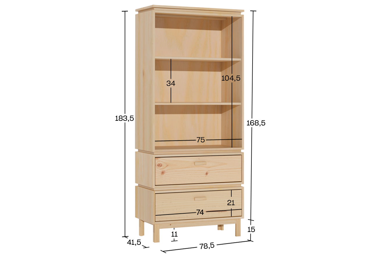 Este es un mueble sostenible y reciclable con certificación PEFC. Fabricado con madera maciza ecológica de pino insignis, procedente de bosques locales y sostenibles.