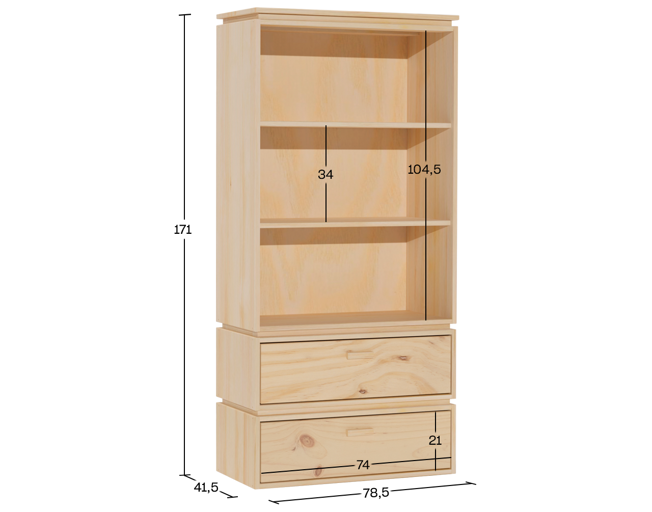 Estantería baja con dos cajones de madera natural para libros y objetos decorativos o almacenaje. Ideal para espacios de estudio y trabajo. Este mueble combina funcionalidad y diseño natural, pensado para adaptarse a diferentes espacios de tu hogar. Fabricado con madera ecológica de alta calidad, permite organizar y almacenar de forma eficiente, mientras mantiene un estilo nórdico y atemporal.